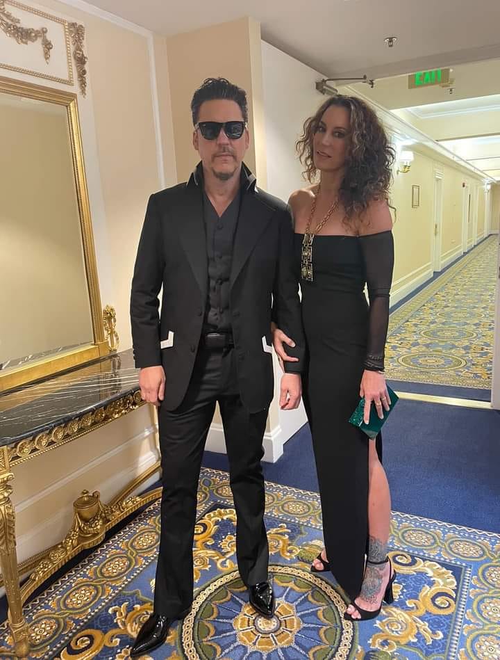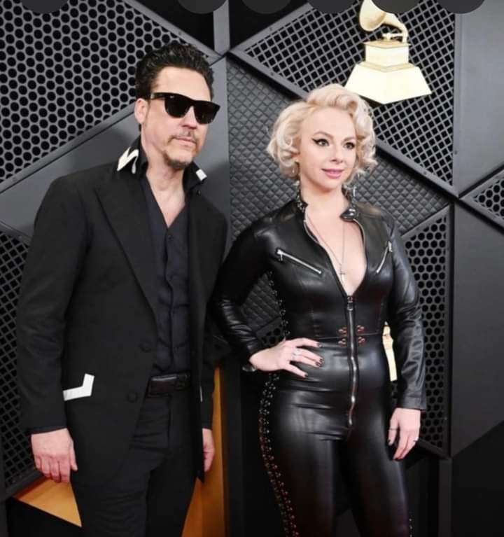 Jesse Dayton and Samantha Fish channeling 1970 and ‘68 Comeback Elvis on the Grammy red carpet, Feb. 4, 2024. (Pic courtesy of Jesse Dayton)